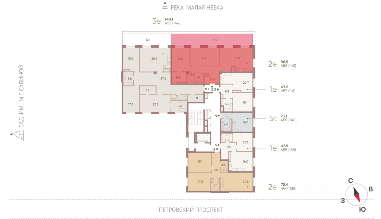 Цена действует при 100% оплате и на определенные ипотечные программы. Подробности — в отделе продаж по телефону. ЖК Нева Хаус - это масштабный проект элитного класса, который возведен застройщиком "ЛСР. Недвижимость - Северо-Запад" в одном из самых зеленых уголков Петроградского района. Он состоит из восьми монолитных разновысотных корпусов, в архитектурном облике которых гармонично сочетаются элементы постмодернизма, классического стиля и современных тенденций. Дизайн-проект ЖК был разработан известным петербуржским архитектором Евгением Герасимовым. Наружные стены домов оснащены износостойкими навесными фасадами и облицованы декоративным клинкерным кирпичом нескольких оттенков. Высота домов в проекте варьируется от 7 до 9 этажей. Комплекс оснащен современным оборудованием, которое обеспечивает жильцам максимальный уровень безопасности и комфорта. Покупателям предлагается разнообразный выбор планировок элитного жилья, начиная от просторных однокомнатных квартир и заканчивая пятикомнатными видовыми пентхаусами. Высота потолков в помещениях составляет 3-3.8 метра. Во всех форматах жилья предусмотрены большие кухни (от 12 кв. м), зонированные прихожие с отдельными гардеробными, увеличенные оконные проемы, ниши для установки кондиционеров и изолированные от бытовых помещений спальни. Разнообразие планировок включает варианты с просторными террасами, объединенными кухнями-гостиными, раздельными санузлами и дополнительными туалетами, эркерами и помещениями нестандартной формы. Площадь квартир - 46.87-300.79 квадратных метров. Базовая стоимость жилья не включает предчистовую или чистовую отделку помещений. В готовых квартирах установлены усиленные дизайнерские двери, оконные блоки с дерево-алюминиевыми рамами из натурального дуба и двойными стеклопакетами, современные отопительные радиаторы, оснащенные регуляторами температуры, и счетчики с функцией автоматического сбора и передачи данных. Закрытые дворы комплекса превращены в уютные прогулочные зоны для детей и взрослых. Застройщик выполнил озеленение пространства, согласно авторскому проекту ландшафтного дизайна, проложил велодорожки и тротуары, организовал закрытую набережную, установил многофункциональные спортивно-игровые городки, беседки, лавочки и стойки для велосипедов. Вся территория ЖК круглосуточно находится под охраной и видеонаблюдением. Для автотранспорта жильцов новостройки предусмотрены подземные паркинги с возможностью доступа из всех парадных на лифте. Их общая вместимость составляет 907 машиномест. Для посетителей организованы наземные стоянки по внешнему периметру территории. Жилой комплекс Нева Хаус находится в элитном районе города в окружении разнообразных объектов инфраструктуры. В пешей доступности работают гимназии, бутики, рестораны, спортивный стадион "Петровский" и филиалы ВУЗов, есть парк и яхт-клуб. Купить квартиру в жилом комплексе Нева Хаус можно в рассрочку или с привлечением ипотечного кредита, в том числе, и на льготных условиях с использованием воен