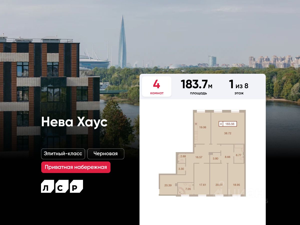 ЖК Нева Хаус - это масштабный проект элитного класса, который возведен застройщиком "ЛСР. Недвижимость - Северо-Запад" в одном из самых зеленых уголков Петроградского района. Он состоит из восьми монолитных разновысотных корпусов, в архитектурном облике которых гармонично сочетаются элементы постмодернизма, классического стиля и современных тенденций. Дизайн-проект ЖК был разработан известным петербуржским архитектором Евгением Герасимовым. Наружные стены домов оснащены износостойкими навесными фасадами и облицованы декоративным клинкерным кирпичом нескольких оттенков. Высота домов в проекте варьируется от 7 до 9 этажей. Комплекс оснащен современным оборудованием, которое обеспечивает жильцам максимальный уровень безопасности и комфорта. Покупателям предлагается разнообразный выбор планировок элитного жилья, начиная от просторных однокомнатных квартир и заканчивая пятикомнатными видовыми пентхаусами. Высота потолков в помещениях составляет 3-3.8 метра. Во всех форматах жилья предусмотрены большие кухни (от 12 кв. м), зонированные прихожие с отдельными гардеробными, увеличенные оконные проемы, ниши для установки кондиционеров и изолированные от бытовых помещений спальни. Разнообразие планировок включает варианты с просторными террасами, объединенными кухнями-гостиными, раздельными санузлами и дополнительными туалетами, эркерами и помещениями нестандартной формы. Площадь квартир - 46.87-300.79 квадратных метров. Базовая стоимость жилья не включает предчистовую или чистовую отделку помещений. В готовых квартирах установлены усиленные дизайнерские двери, оконные блоки с дерево-алюминиевыми рамами из натурального дуба и двойными стеклопакетами, современные отопительные радиаторы, оснащенные регуляторами температуры, и счетчики с функцией автоматического сбора и передачи данных. Закрытые дворы комплекса превращены в уютные прогулочные зоны для детей и взрослых. Застройщик выполнил озеленение пространства, согласно авторскому проекту ландшафтного дизайна, проложил велодорожки и тротуары, организовал закрытую набережную, установил многофункциональные спортивно-игровые городки, беседки, лавочки и стойки для велосипедов. Вся территория ЖК круглосуточно находится под охраной и видеонаблюдением. Для автотранспорта жильцов новостройки предусмотрены подземные паркинги с возможностью доступа из всех парадных на лифте. Их общая вместимость составляет 907 машиномест. Для посетителей организованы наземные стоянки по внешнему периметру территории. Жилой комплекс Нева Хаус находится в элитном районе города в окружении разнообразных объектов инфраструктуры. В пешей доступности работают гимназии, бутики, рестораны, спортивный стадион "Петровский" и филиалы ВУЗов, есть парк и яхт-клуб. Купить квартиру в жилом комплексе Нева Хаус можно в рассрочку или с привлечением ипотечного кредита, в том числе, и на льготных условиях с использованием военной ипотеки или маткапитала.