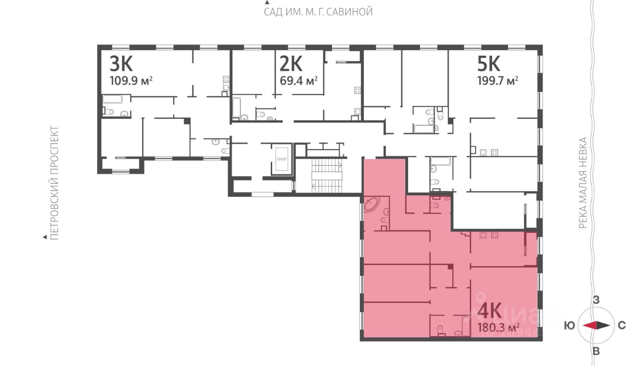 Цена действует при 100% оплате и на определенные ипотечные программы. Подробности — в отделе продаж по телефону. ЖК Нева Хаус - это масштабный проект элитного класса, который возведен застройщиком "ЛСР. Недвижимость - Северо-Запад" в одном из самых зеленых уголков Петроградского района. Он состоит из восьми монолитных разновысотных корпусов, в архитектурном облике которых гармонично сочетаются элементы постмодернизма, классического стиля и современных тенденций. Дизайн-проект ЖК был разработан известным петербуржским архитектором Евгением Герасимовым. Наружные стены домов оснащены износостойкими навесными фасадами и облицованы декоративным клинкерным кирпичом нескольких оттенков. Высота домов в проекте варьируется от 7 до 9 этажей. Комплекс оснащен современным оборудованием, которое обеспечивает жильцам максимальный уровень безопасности и комфорта. Покупателям предлагается разнообразный выбор планировок элитного жилья, начиная от просторных однокомнатных квартир и заканчивая пятикомнатными видовыми пентхаусами. Высота потолков в помещениях составляет 3-3.8 метра. Во всех форматах жилья предусмотрены большие кухни (от 12 кв. м), зонированные прихожие с отдельными гардеробными, увеличенные оконные проемы, ниши для установки кондиционеров и изолированные от бытовых помещений спальни. Разнообразие планировок включает варианты с просторными террасами, объединенными кухнями-гостиными, раздельными санузлами и дополнительными туалетами, эркерами и помещениями нестандартной формы. Площадь квартир - 46.87-300.79 квадратных метров. Базовая стоимость жилья не включает предчистовую или чистовую отделку помещений. В готовых квартирах установлены усиленные дизайнерские двери, оконные блоки с дерево-алюминиевыми рамами из натурального дуба и двойными стеклопакетами, современные отопительные радиаторы, оснащенные регуляторами температуры, и счетчики с функцией автоматического сбора и передачи данных. Закрытые дворы комплекса превращены в уютные прогулочные зоны для детей и взрослых. Застройщик выполнил озеленение пространства, согласно авторскому проекту ландшафтного дизайна, проложил велодорожки и тротуары, организовал закрытую набережную, установил многофункциональные спортивно-игровые городки, беседки, лавочки и стойки для велосипедов. Вся территория ЖК круглосуточно находится под охраной и видеонаблюдением. Для автотранспорта жильцов новостройки предусмотрены подземные паркинги с возможностью доступа из всех парадных на лифте. Их общая вместимость составляет 907 машиномест. Для посетителей организованы наземные стоянки по внешнему периметру территории. Жилой комплекс Нева Хаус находится в элитном районе города в окружении разнообразных объектов инфраструктуры. В пешей доступности работают гимназии, бутики, рестораны, спортивный стадион "Петровский" и филиалы ВУЗов, есть парк и яхт-клуб. Купить квартиру в жилом комплексе Нева Хаус можно в рассрочку или с привлечением ипотечного кредита, в том числе, и на льготных условиях с использованием воен