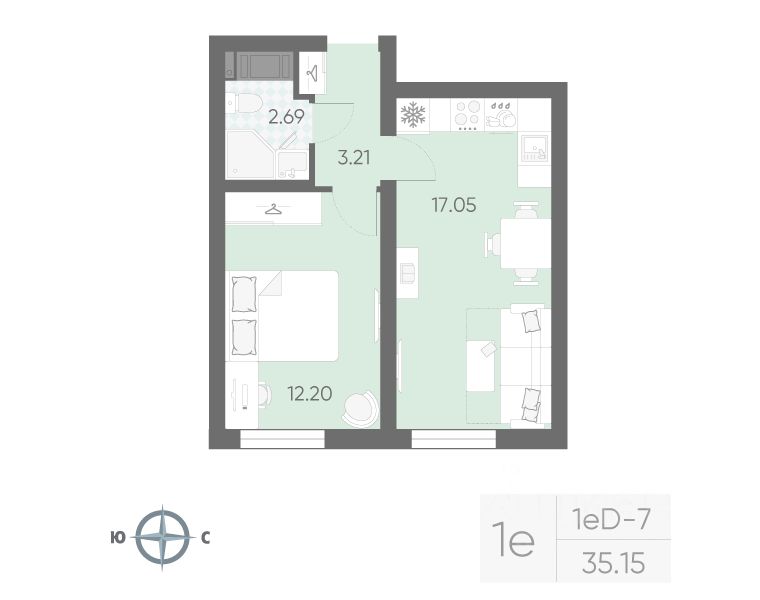 Продается 1-комнатная квартира в ЖК "Морская миля" на 6 этаже. Общая площадь составляет 35.15 кв. м. Квартира с чистовой отделкой. Жилой комплекс "Морская миля" располагается по адресу Санкт-Петербург, Красносельский.