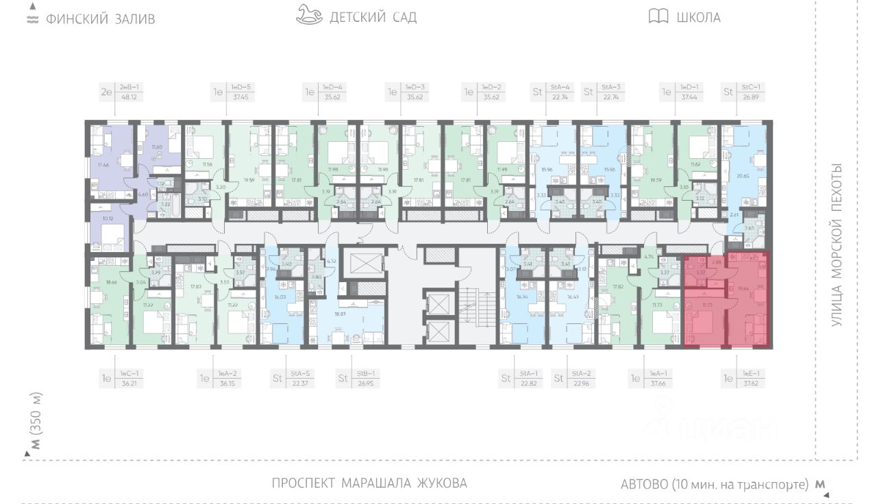 Продается 1-комнатная квартира в ЖК "Морская миля" на 7 этаже. Общая площадь составляет 37.80 кв. м. Квартира с чистовой отделкой. Жилой комплекс "Морская миля" располагается по адресу Санкт-Петербург, Красносельский.