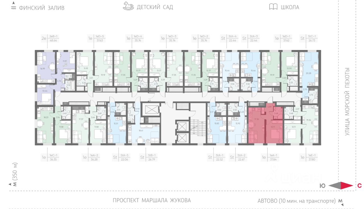 Продается 1-комнатная квартира в ЖК "Морская миля" на 10 этаже. Общая площадь составляет 37.84 кв. м. Квартира с чистовой отделкой. Жилой комплекс "Морская миля" располагается по адресу Санкт-Петербург, Красносельский.