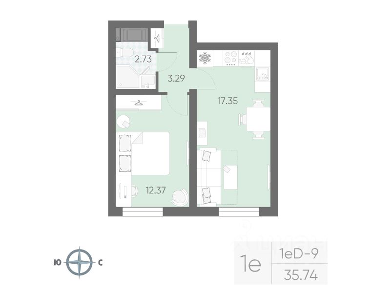 Продается 1-комнатная квартира в ЖК "Морская миля" на 12 этаже. Общая площадь составляет 35.74 кв. м. Квартира с чистовой отделкой. Жилой комплекс "Морская миля" располагается по адресу Санкт-Петербург, Красносельский.