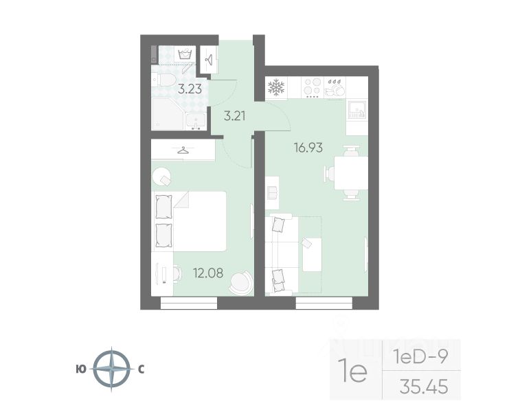 Между корпусами расположены спортивные и детские площадки, пешеходный бульвар. В квартире выполнена полная отделка "Comfort Wood" из качественных материалов: прочный ламинат цвета благородного дуба, фактурные белые обои, керамическая плитка в ванной.