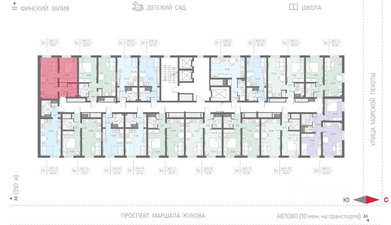 Продается 1-комнатная квартира в ЖК "Морская миля" на 4 этаже. Общая площадь составляет 37.31 кв. м. Квартира с чистовой отделкой. Жилой комплекс "Морская миля" располагается по адресу Санкт-Петербург, Красносельский.