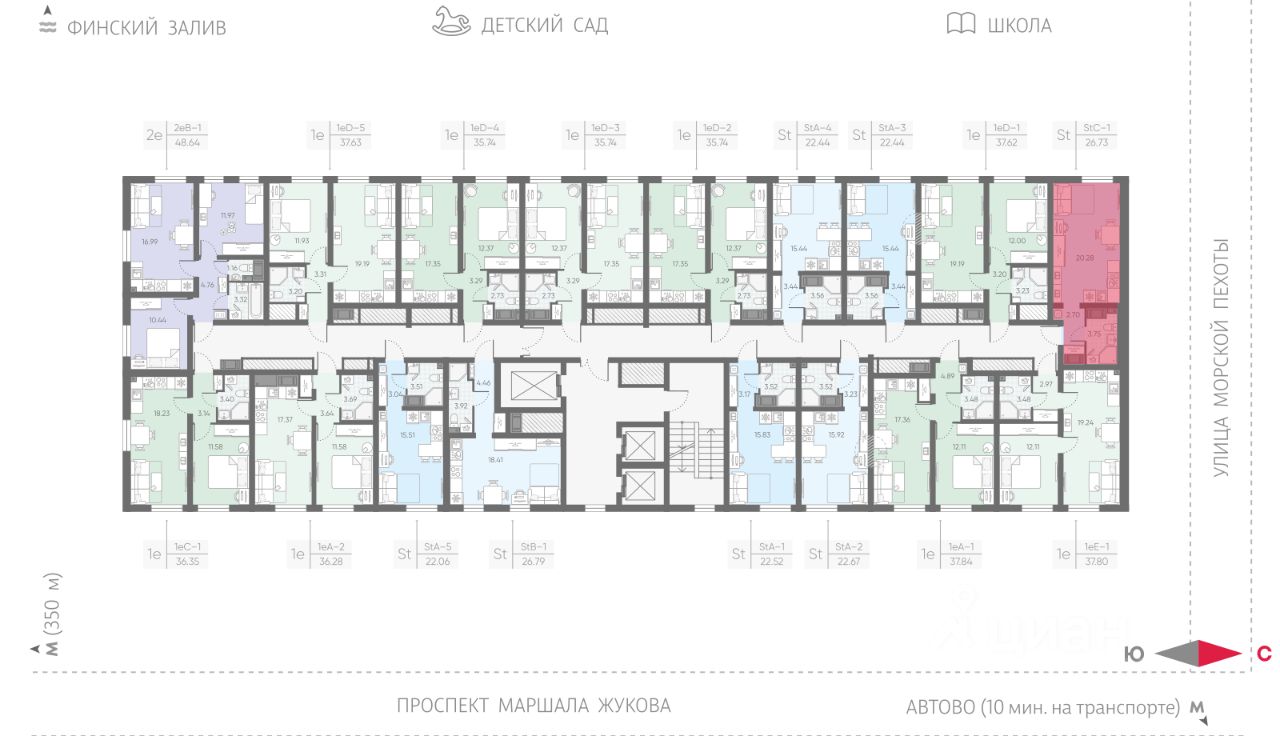Продается студия в ЖК "Морская миля" на 13 этаже. Общая площадь составляет 26.73 кв. м. Квартира с чистовой отделкой. Жилой комплекс "Морская миля" располагается по адресу Санкт-Петербург, Красносельский.