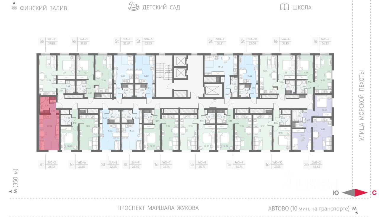 Продается студия в ЖК "Морская миля" на 13 этаже. Общая площадь составляет 26.72 кв. м. Квартира с чистовой отделкой. Жилой комплекс "Морская миля" располагается по адресу Санкт-Петербург, Красносельский.