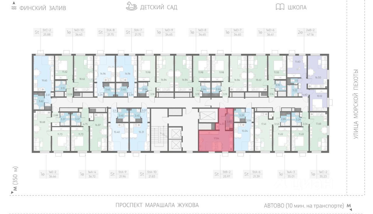 Продается студия в ЖК "Морская миля" на 9 этаже. Общая площадь составляет 25.97 кв. м. Квартира с чистовой отделкой. Жилой комплекс "Морская миля" располагается по адресу Санкт-Петербург, Красносельский.