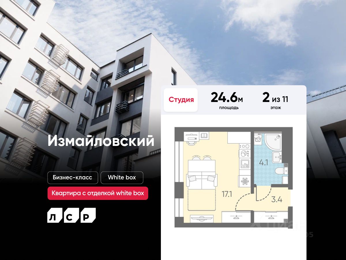 Продаётся студия в ЖК "Измайловский" на 2 этаже. Общая площадь составляет 24.60 кв. м. Квартира с white box отделкой. Жилой комплекс "Измайловский" располагается по адресу Санкт-Петербург, Адмиралтейский.