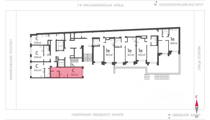 Продаётся студия в ЖК "Измайловский" на 2 этаже. Общая площадь составляет 26.40 кв. м. Квартира с white box отделкой. Жилой комплекс "Измайловский" располагается по адресу Санкт-Петербург, Адмиралтейский.