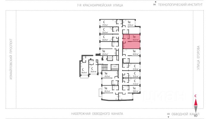Продаётся 1-комнатная квартира в ЖК "Измайловский" на 2 этаже. Общая площадь составляет 42.40 кв. м. Квартира с white box отделкой. Жилой комплекс "Измайловский" располагается по адресу Санкт-Петербург, Адмиралтейский.