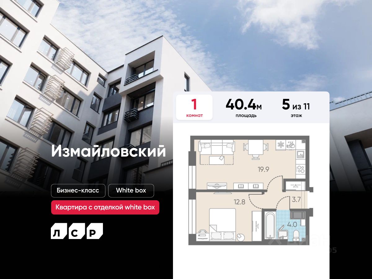 Продаётся 1-комнатная квартира в ЖК "Измайловский" на 5 этаже. Общая площадь составляет 40.40 кв. м. Квартира с white box отделкой. Жилой комплекс "Измайловский" располагается по адресу Санкт-Петербург, Адмиралтейский.