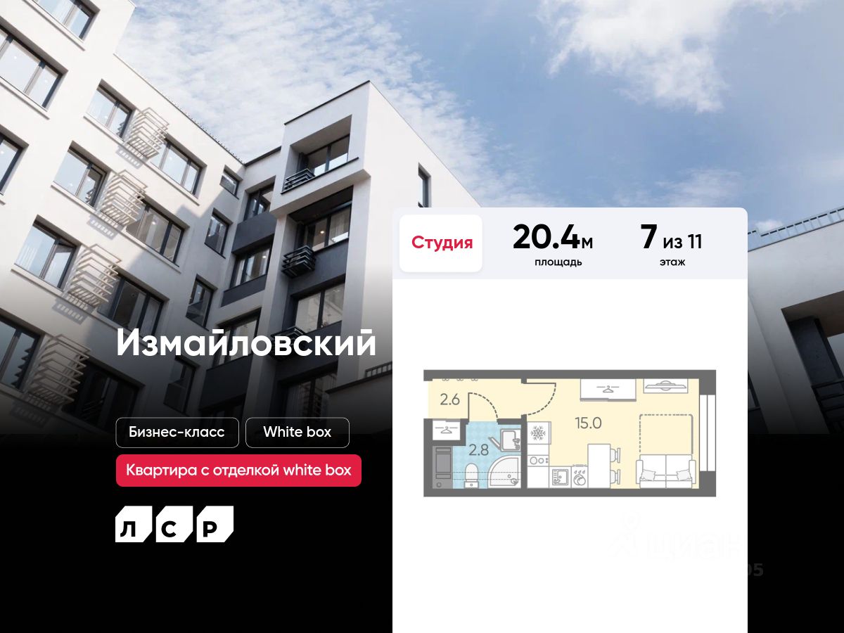 Продаётся студия в ЖК "Измайловский" на 7 этаже. Общая площадь составляет 20.40 кв. м. Квартира с white box отделкой. Жилой комплекс "Измайловский" располагается по адресу Санкт-Петербург, Адмиралтейский.