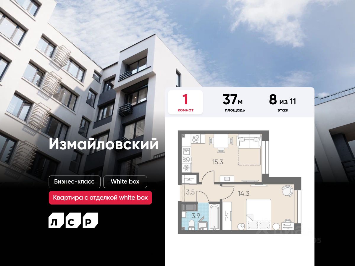 Продаётся 1-комнатная квартира в ЖК "Измайловский" на 8 этаже. Общая площадь составляет 37.00 кв. м. Квартира с white box отделкой. Жилой комплекс "Измайловский" располагается по адресу Санкт-Петербург, Адмиралтейский.