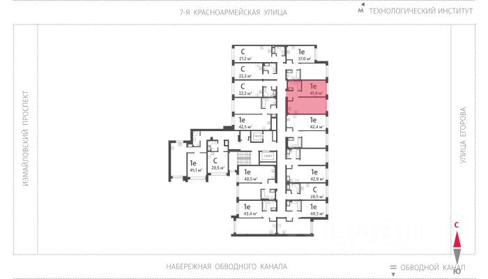 Продаётся 1-комнатная квартира в ЖК "Измайловский" на 9 этаже. Общая площадь составляет 41.90 кв. м. Квартира с white box отделкой. Жилой комплекс "Измайловский" располагается по адресу Санкт-Петербург, Адмиралтейский.