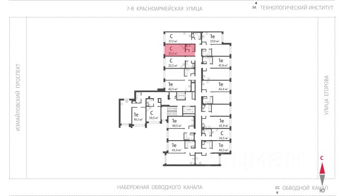 Продаётся студия в ЖК "Измайловский" на 9 этаже. Общая площадь составляет 22.20 кв. м. Квартира с white box отделкой. Жилой комплекс "Измайловский" располагается по адресу Санкт-Петербург, Адмиралтейский.