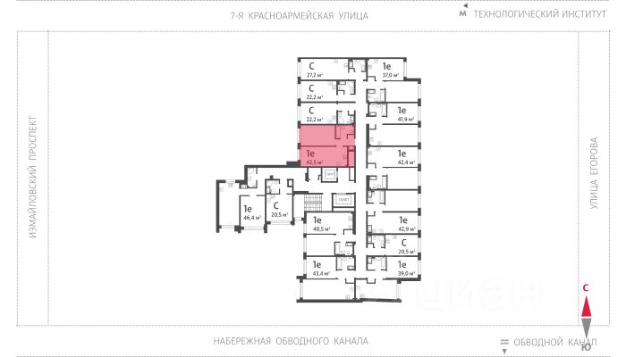 Продаётся 1-комнатная квартира в ЖК "Измайловский" на 10 этаже. Общая площадь составляет 42.50 кв. м. Квартира с white box отделкой. Жилой комплекс "Измайловский" располагается по адресу Санкт-Петербург, Адмиралтейский.