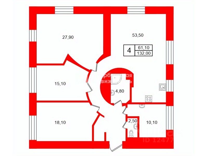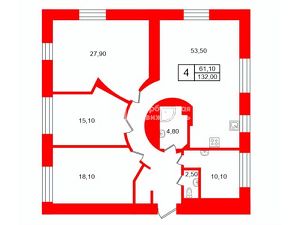 - Изолированные комнаты: 27,9 м2, 18,1 м2, 15,1 м2