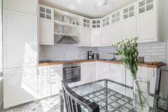 Теплый пол на кухне, в ванной, в коридоре, а так же в гостевом санузле. В ванной и гостевом санузле - дорогая плитка, привезенная под заказ из Италии. В коридоре - керамогранит. На кухне - стеклянный кафель.