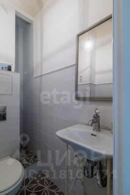 В гостевом санузле столешница под раковину была выкована под рисунок напольного итальянского керамогранита.