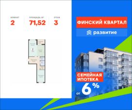 Продается квартира площадью 71.52 кв. м с отделкой white box. Квартира расположена на 3 этаже 7 этажного дома, в жилом комплексе комфорт-класса "Финский Квартал".
