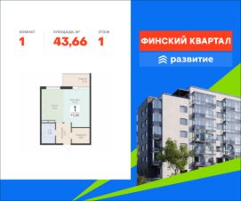 Продается квартира площадью 43.66 кв. м без отделки. Квартира расположена на 1 этаже 8 этажного дома, в жилом комплексе комфорт-класса "Финский Квартал".
