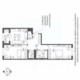 -Комната 16,3+16,2м2; - Ванная комната 4 ,6 м2.; -Туалет 2,2 м2.;- Прихожая 12,2 м2, в том числе гардеробная 1,5м2.