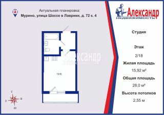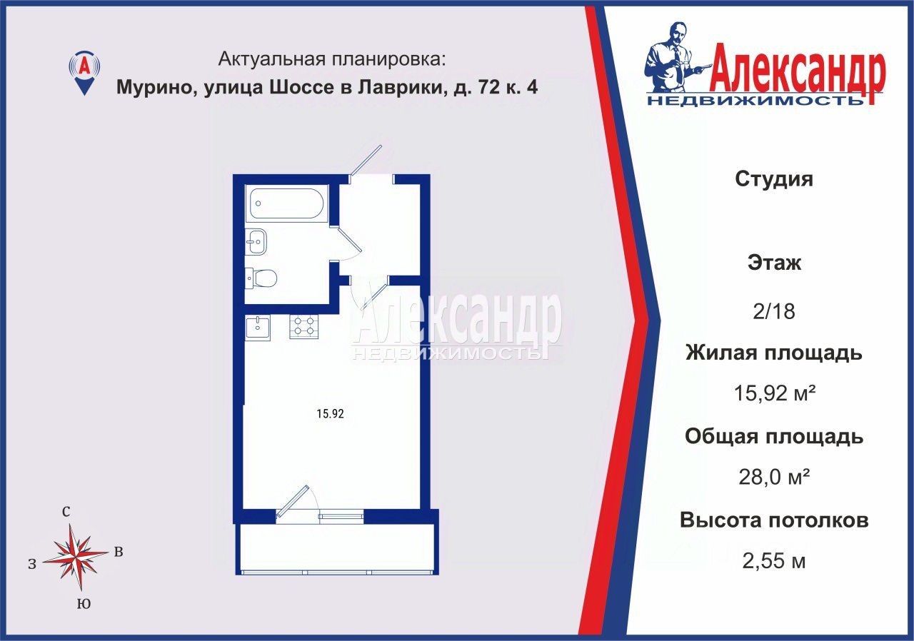 1703456 В прямой продаже просторная студия в ЖК "Северный", в пешей доступности от метро "Девяткино"