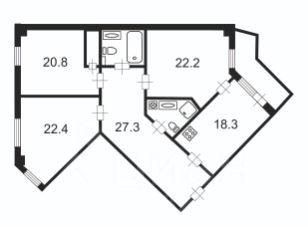 Квартира трехкомнатная, общей площадью 121 кв.м. Высота потолков 2,76 м. Три большие комнаты, просторный коридор. Кухня 18,3 кв.м. 2 санузла - с душевой кабиной и ванной.