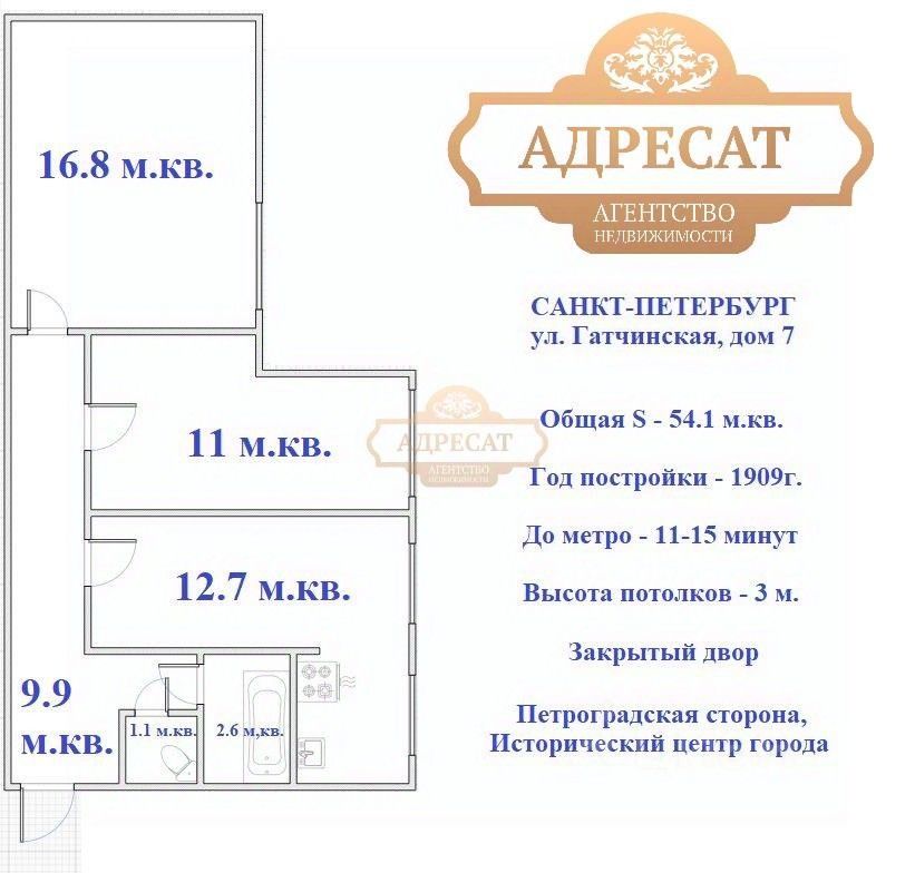 В свободной продаже двухкомнатная квартира в Петроградском районе Санкт-Петербурга, на Гатчинской улице, дом 7.