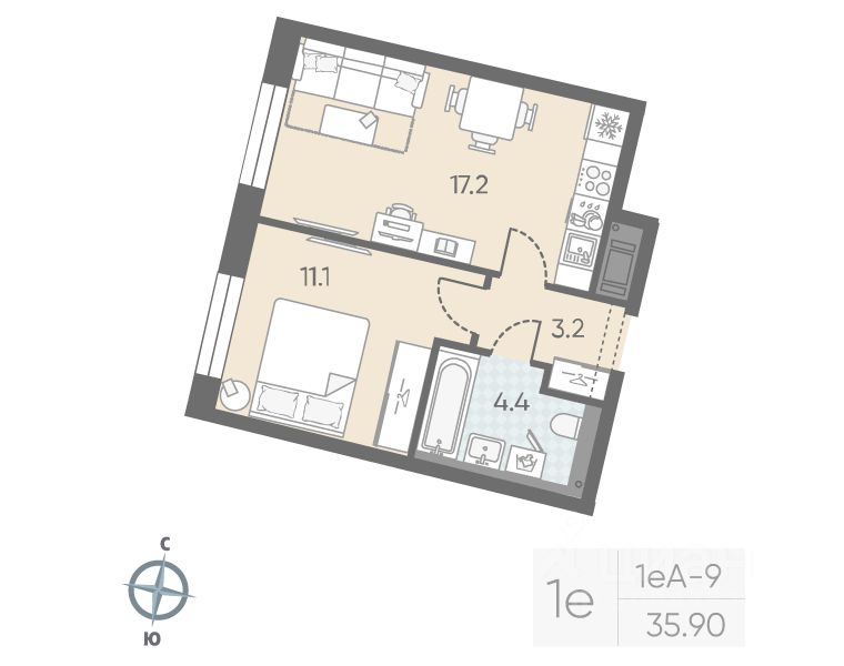 Продаётся 1-комнатная квартира в ЖК "Большая Охта" на 6 этаже. Общая площадь составляет 35.90 кв. м. Квартира с white box отделкой. Жилой комплекс "Большая Охта" располагается по адресу Санкт-Петербург, Красногвардейский.