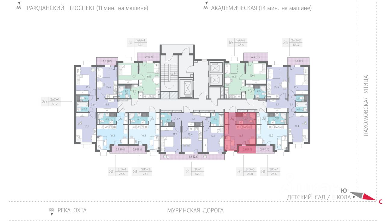 • 15 минут на авто до станций "Гражданский проспект" и "Академическая";