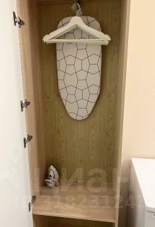 - во 2 комнате площадью 13.2 кв.м. раскладной диван, рабочее место (стеллаж, настенная полка, стол и стул), шкаф для одежды, гардеробная с зеркалом, кухонный гарнитур (с варочной панелью, м/в печью, чайником и посудой) и столешница с двумя барными стульями. Холодильник отдельностоящий.