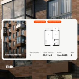 Продаётся 1-комн. квартира площадью 35,21 кв.м на 5 этаже 15 этажного дома (Корпус 9, Секция 1) проекта ПИК Янинский лес. Светлый просторный подъезд на уровне земли, функциональная планировка, большие окна, c отделкой.