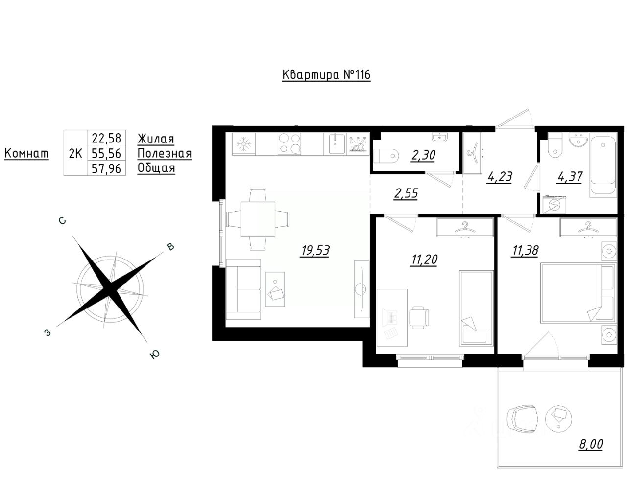 Квартира 116 в малоэтажном районе Счастье 2.0 - это особое, продуманное до мелочей, пространство для жизни в одном из самых живописных районов Санкт-Петербурга, в непосредственной близости от дворцово-паркового ансамбля Павловска. Все составляющие квартала направлены на максимальный комфорт его жителей: оригинальная архитектура, закрытые и безопасные дворы, современные планировки квартир, великолепная природа южного пригорода в сочетании с развитием собственной коммерческой и социальной инфраструктуры. Срок сдачи - 1 кв. 2025 года