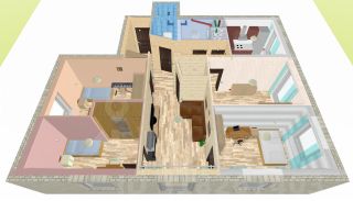 Стены - двойной профильный каркас плюс деревянные закладные в местах усиления. Профиль и гипсокартон (Knauf), ГПЛ в 4 слоя по два с каждой стороны, между ГП слой профф.звукоизоляции. Электропроводка внутри стен.