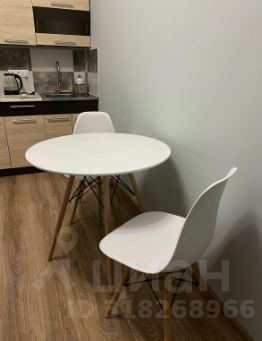 Студия оформлена в дизайнерском стиле. На кухне площадью 4 кв. м есть все необходимое для комфортной готовки. Планировка продумана до мелочей, что позволяет рационально использовать пространство. Совмещенный санузел выполнен в современном стиле, использована качественная сантехника.