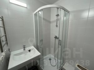 - Полностью готовый санузел: плитка керамогранит, раковина с подвисной тумбой, душевой уголок с ограждением, унитаз