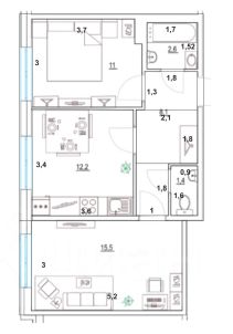* Общая площадь квартиры 50.7м