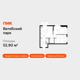 Продаётся 2-комн. квартира площадью 52,9 кв.м на 4 этаже 12 этажного дома (Корпус 6, Секция 1) проекта ПИК Витебский парк. Светлый просторный подъезд на уровне земли, функциональная планировка, большие окна, предчистовая отделка.