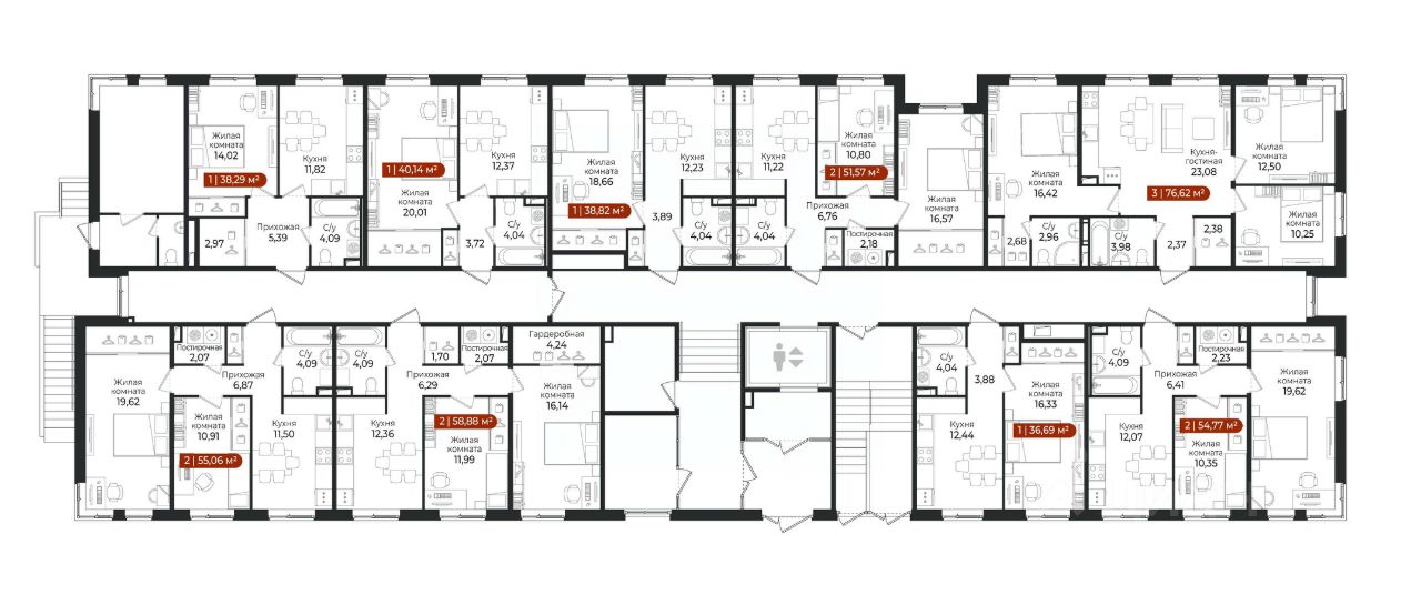 Выбирайте уютную однокомнатную или просторную четырехкомнатную квартиру, с площадью кухни до 23 м2 с гардеробной или постирочной.