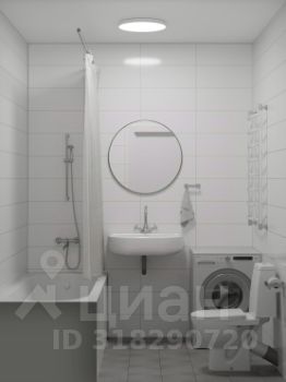 В отделке санузла также использованы светлые оттенки. Функциональная мебель и сантехника подобраны с учетом эргономики помещения, создавая максимальный комфорт при использовании.