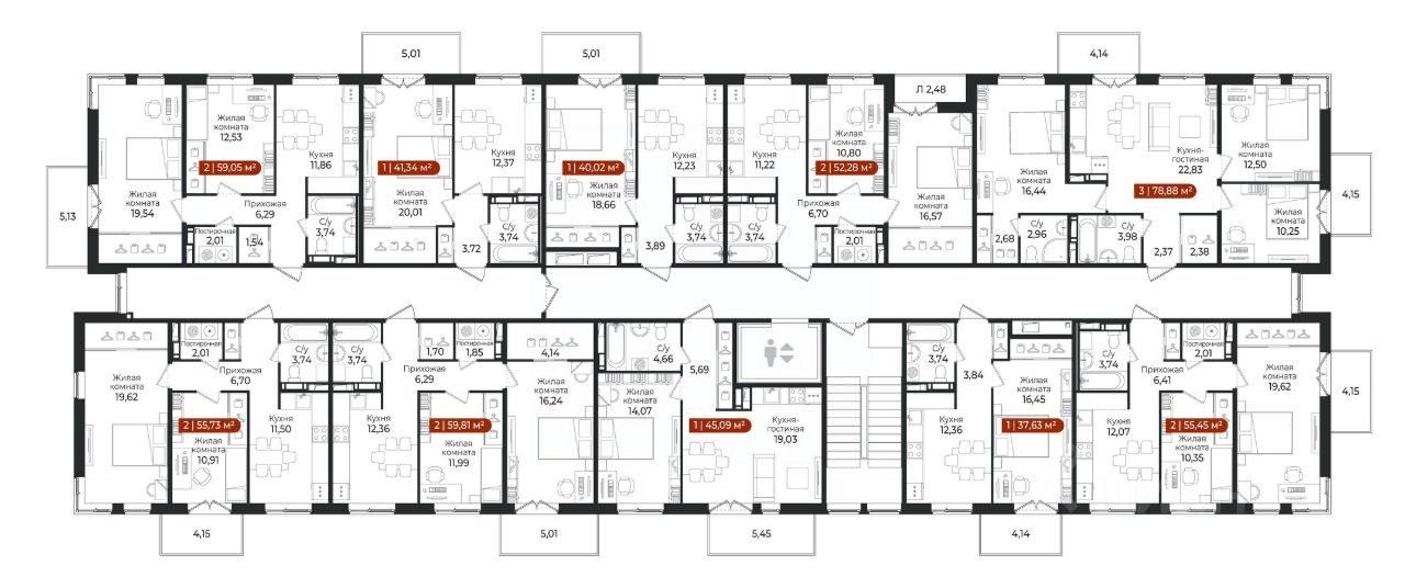 Выбирайте уютную однокомнатную или просторную четырехкомнатную квартиру, с площадью кухни до 23 м2 с гардеробной или постирочной.