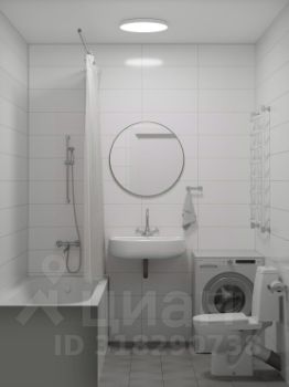 В отделке санузла также использованы светлые оттенки. Функциональная мебель и сантехника подобраны с учетом эргономики помещения, создавая максимальный комфорт при использовании.