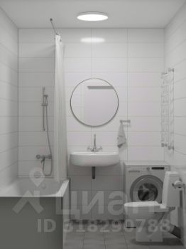 В отделке санузла также использованы светлые оттенки. Функциональная мебель и сантехника подобраны с учетом эргономики помещения, создавая максимальный комфорт при использовании.