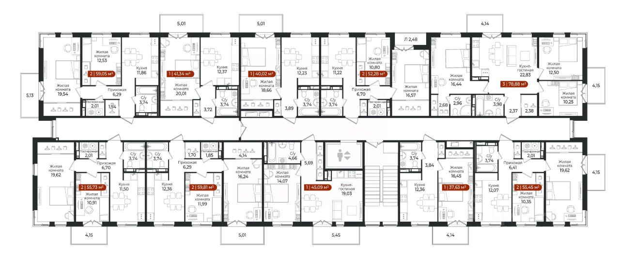 Выбирайте уютную однокомнатную или просторную четырехкомнатную квартиру, с площадью кухни до 23 м2 с гардеробной или постирочной.