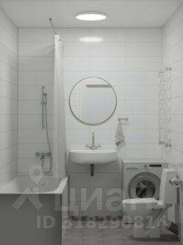 В отделке санузла также использованы светлые оттенки. Функциональная мебель и сантехника подобраны с учетом эргономики помещения, создавая максимальный комфорт при использовании.