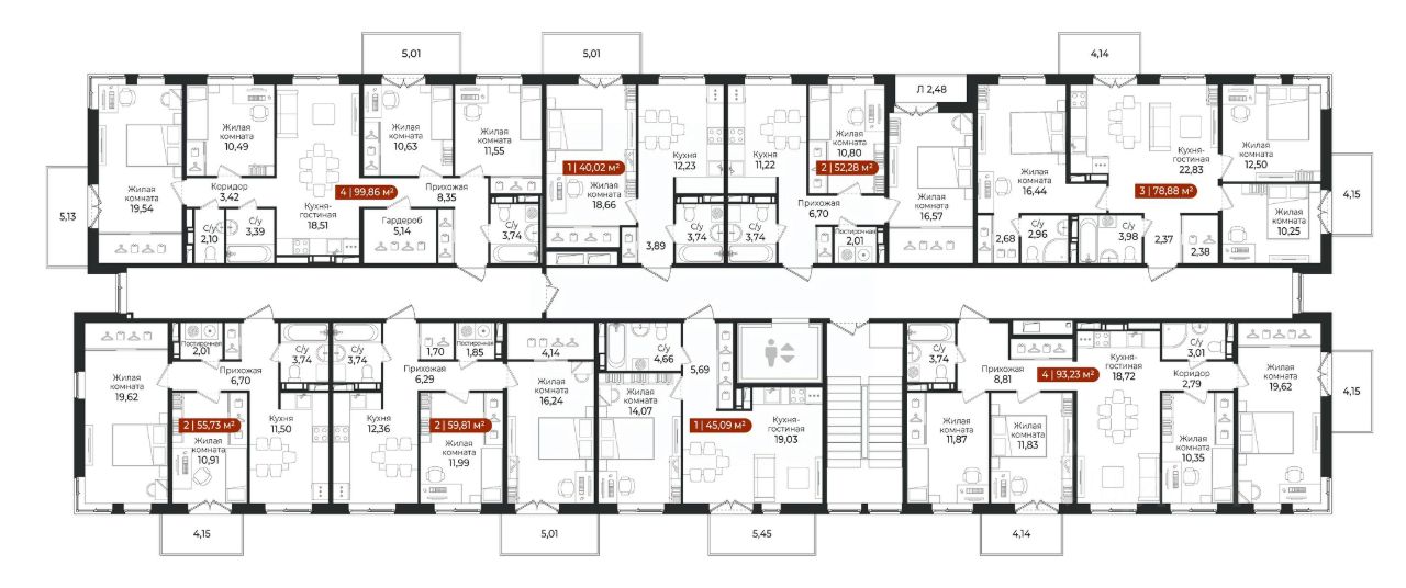 Выбирайте уютную однокомнатную или просторную четырехкомнатную квартиру, с площадью кухни до 23 м2 с гардеробной или постирочной.