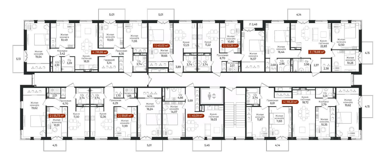 Выбирайте уютную однокомнатную или просторную четырехкомнатную квартиру, с площадью кухни до 23 м2 с гардеробной или постирочной.