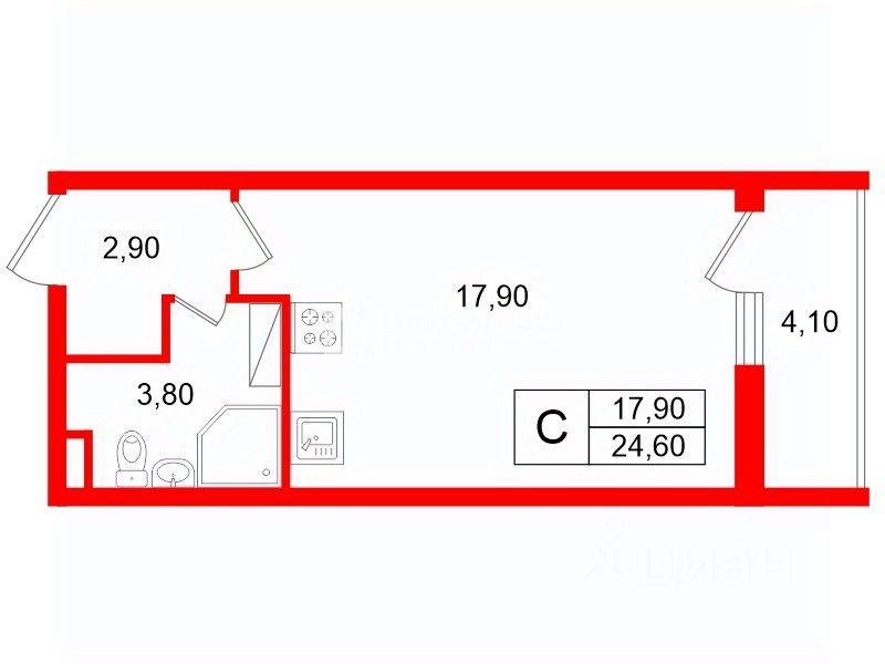 Площадь 24,6 кв.м.